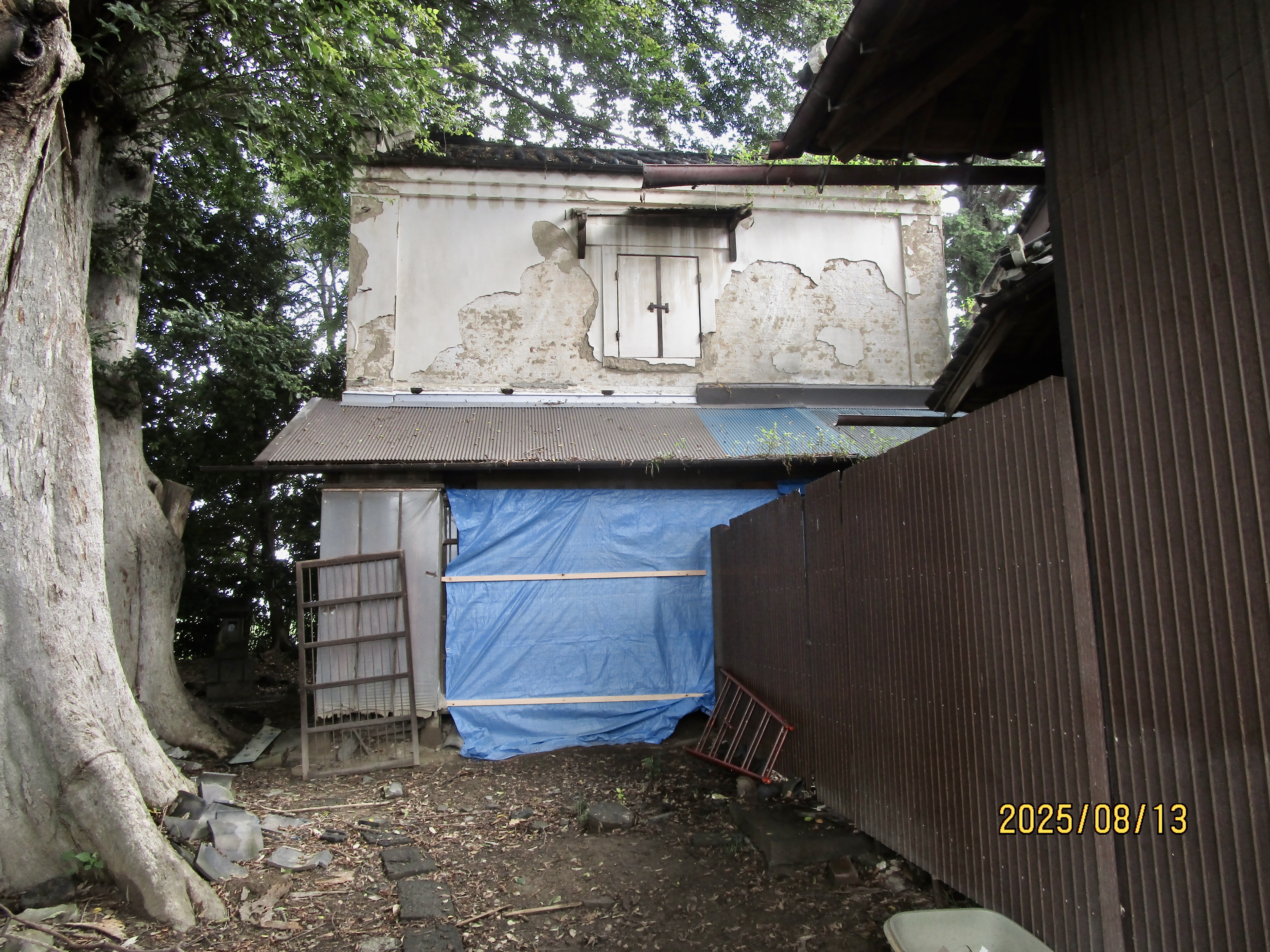 廊下が腐ってるだけでなく、上の張りも腐ってる所があって『相当ヤバイ』状態だから、屋根の瓦も下ろして軽くしなければ耐えられないかも知れない?