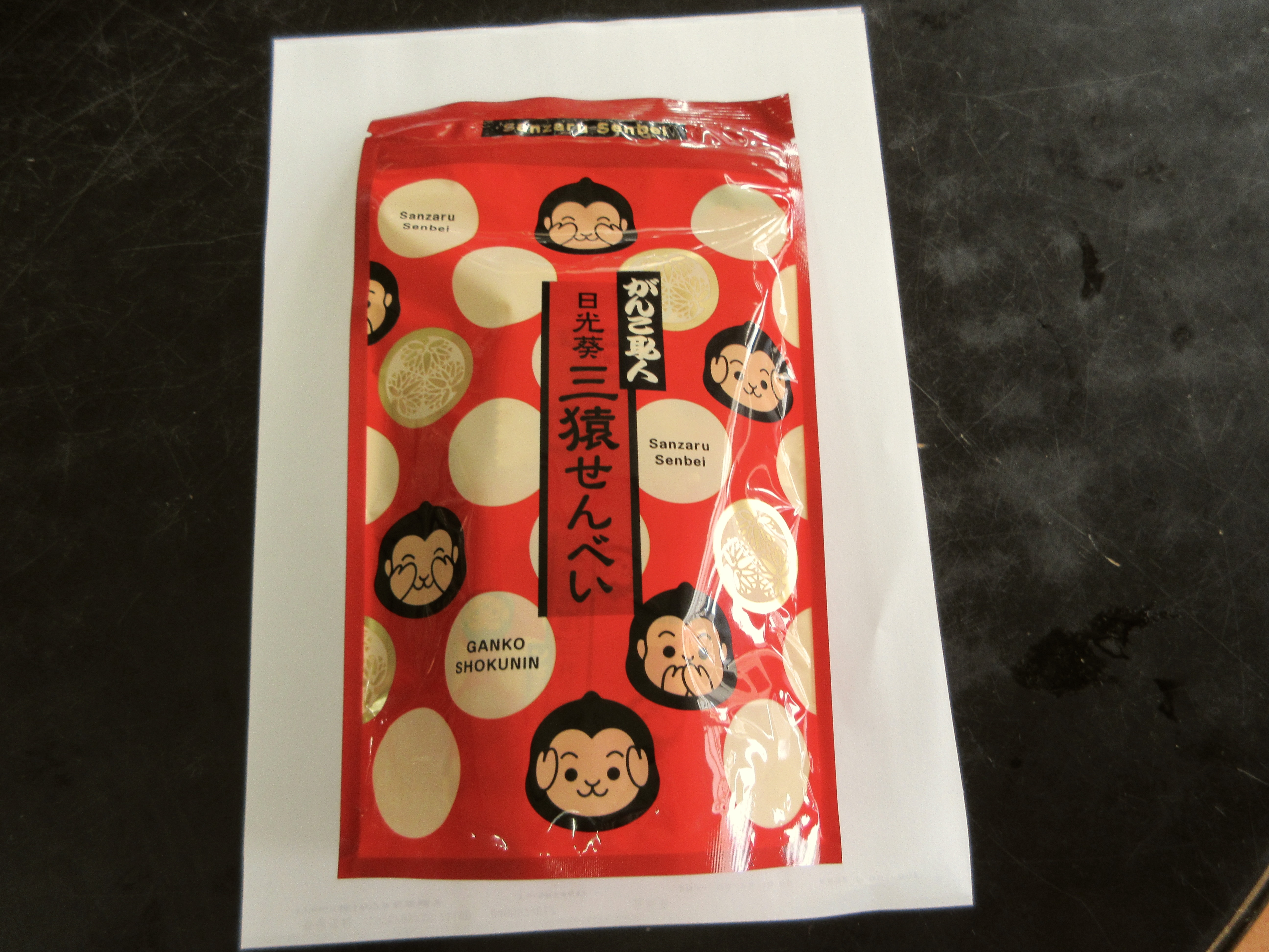 昨日は珠算教室だったが、生徒から「お土産です」と『日光の三猿せんべい』と云うのを頂戴した。